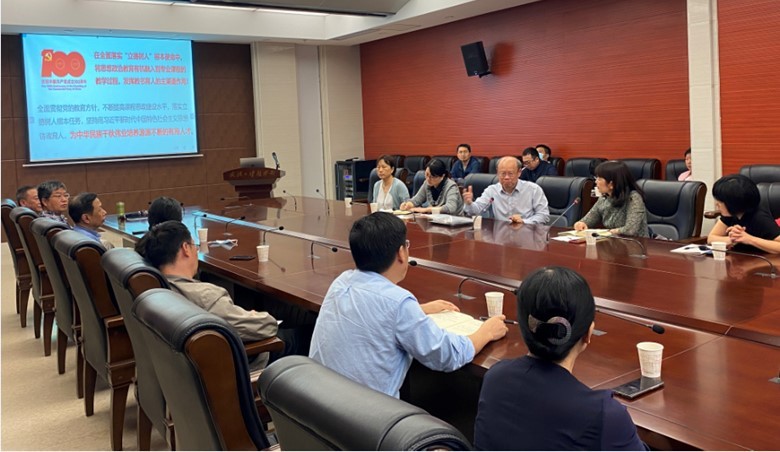 何小华在总结讲话提出:在全面落实“立德树人”的根本使命中,要将思想政治教育有机融入到基础医学院所有专业课程的教学过程,要发挥教书育人的主渠道作用,坚持用习近平新时代中国特色社会主义思想铸魂育人,为中华民族千秋伟业培养源源不断的有用人才。