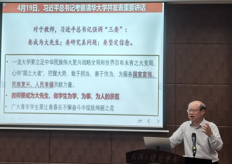 “要在课程教学中注重加强医德医风教育……在培养精湛医术的同时,教育引导学生始终把人民群众生命安全和身体健康放在首位,做党和人民信赖的好医生。” 5月23日上午,“教与学的革命”珞珈论坛之基础医学院分论坛在医学部八号楼1楼会议室举行,特邀中山大学中山医学院党委书记吴忠道教授做了题为《课程思政的思考与实践》的专题报告。