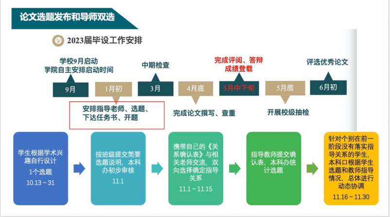 为了改变学生自己不积极主动思考,被动等待老师出题的局面,文学院于今年改革了毕业论文和导师指导关系确认流程,于10月发布了《文学院2023届本科毕业论文指导教师双选实施方案》。要求首先由学生自己独立思考,根据自己的阅读和兴趣方向,自行初步确定选题,在自己充分思考的基础上再去联系指导老师、与指导老师充分沟通后确定选题和指导关系。以上举措,极大调动了学生自主独立思考,自主完成毕业论文的主观能动性。