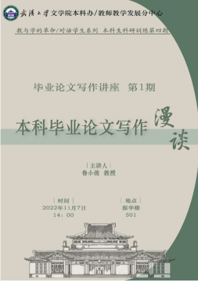 毕业论文写作系列讲座第一讲,古代文学教研室鲁小俊教授从“为什么写论文?”“什么是好论文?”“好论文从哪里来?”“几个常见问题”和“论文投稿ABC”五个方面为同学们讲解毕业论文写作中的方方面面。鲁老师的讲解中穿插了大量论文实例,详实有料,使同学们对如何学习和模仿优秀论文、如何撰写并发表自己的论文有了更清晰的认识。
