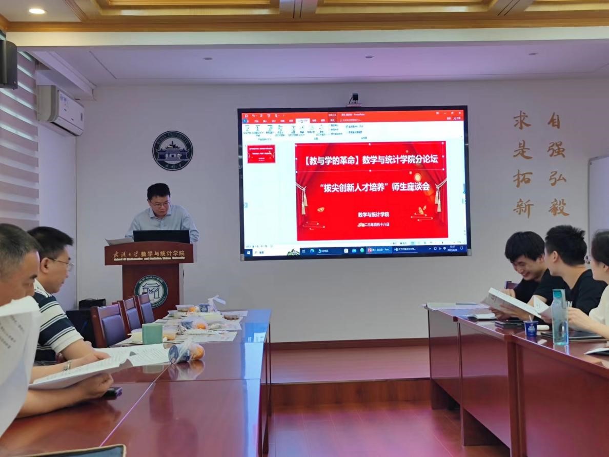 (通讯员:杨宁)4月18日,数学与统计学院召开师生座谈会,研讨拔尖创新人才培养工作。院党委书记左军,院长赵会江,副院长王茂发、王六权出席。各系正副系主任、院实验中心主任、院教学指导委员会成员、学生辅导员、教学秘书及学生代表参会。王六权主持座谈会。