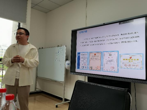 参观结束后,参访团在负责人涂亮的带领下,来到会议室进行学习。涂亮的分享从公司简介、技术介绍、跨国业务的问题、未来的发展四个方面展开。