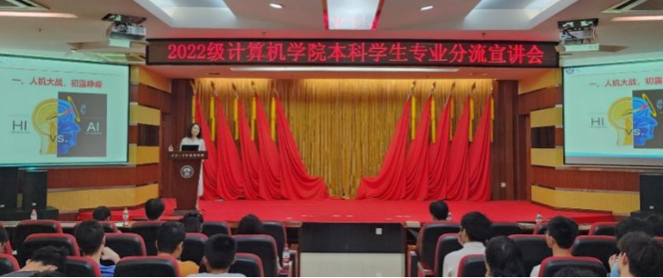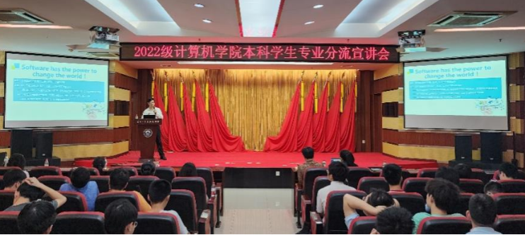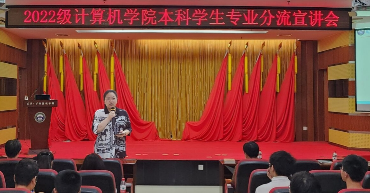 (通讯员:王恒)2023年5月17日下午4时,2022级本科生分流宣讲会在计算机学院八楼报告厅顺利举办。院纪委书记杨晓岚、副院长彭蓉、学院各系主任、专业教师代表、辅导员以及2022级全体同学参加本次活动。本次会议在以学生为本、激发学习热情、促进学风建设、提高人才培养质量的指导思想下,为专业分流的同学答疑解惑,增进学生对本科专业的了解,合理规划未来发展方向。